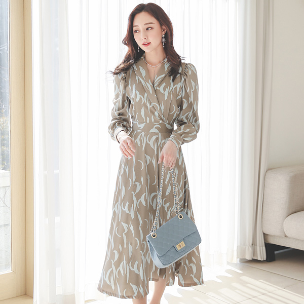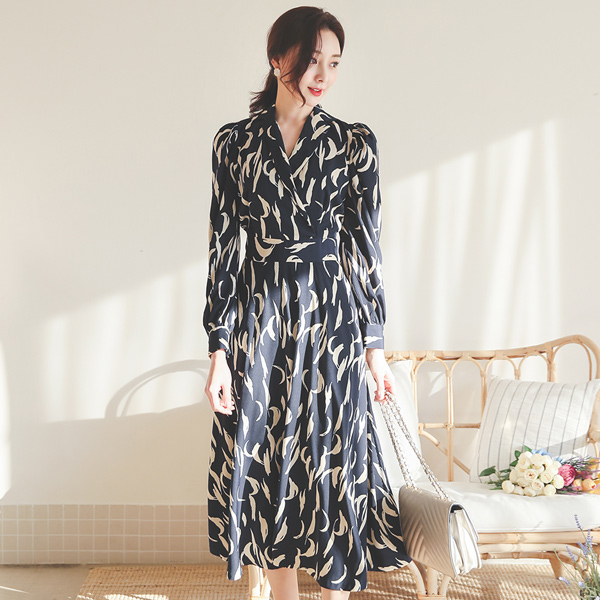 Mono Drawing Shirt Collar Wrap Dress