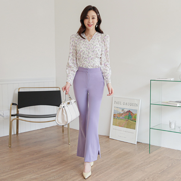 Side Slit Tension Boot-Cut Slacks