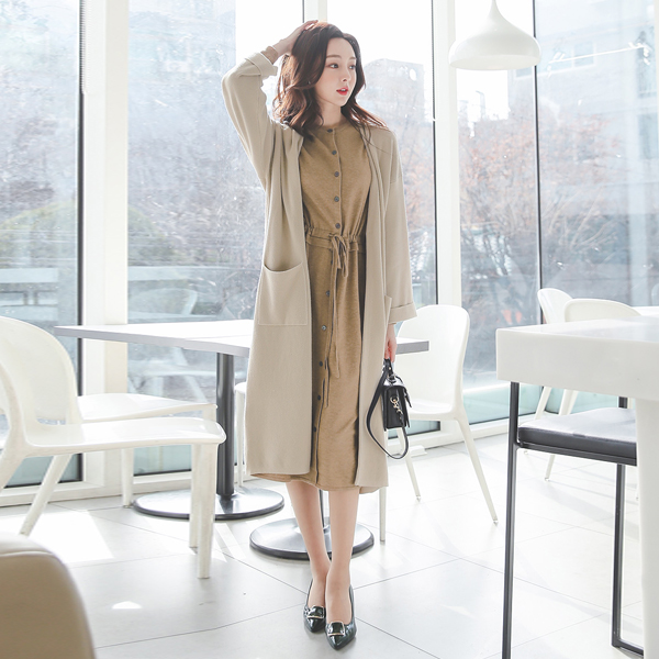Natural V-neck roll-up sleeve Open Cardigan