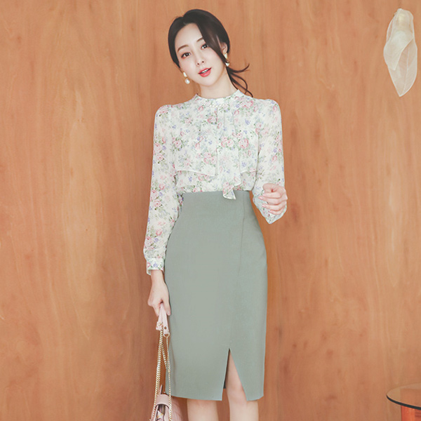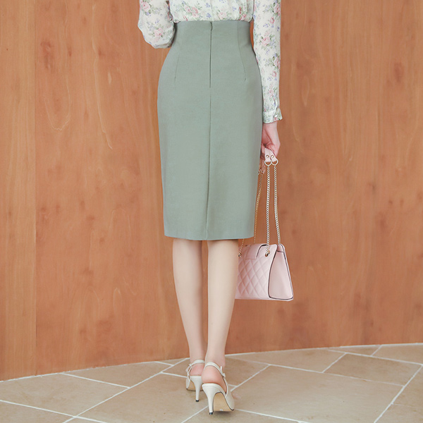 Stitch Diagonal Center Front Vent High Span Skirt(spring)