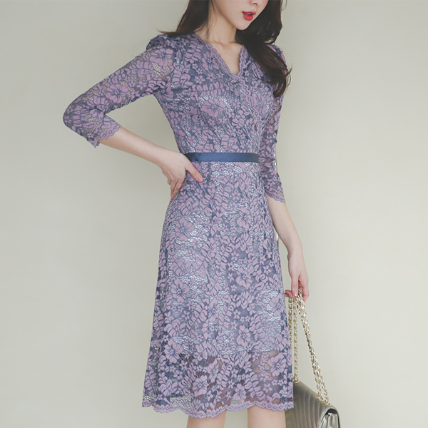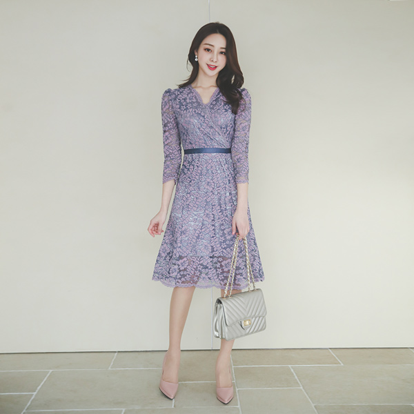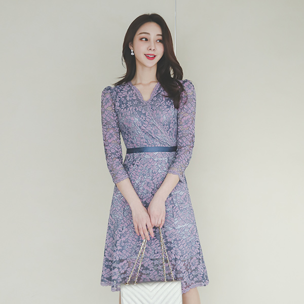 Surplice Satin Mix Gored Lace Dress