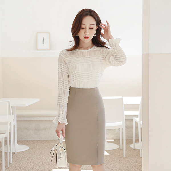 Lady High-Waist Slit Skirt(spring)