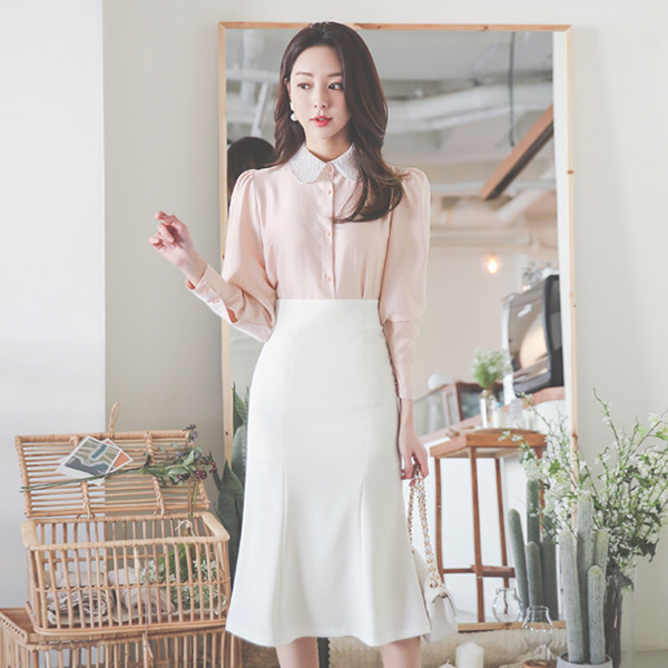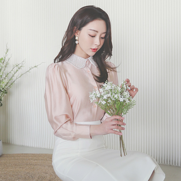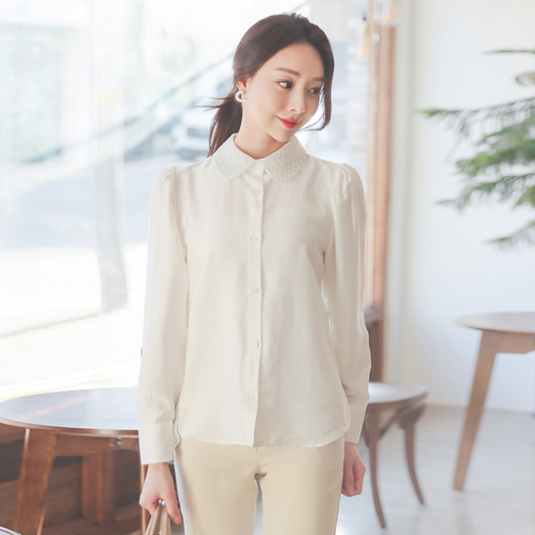 Beads Chain Double Flat Collar Blouse