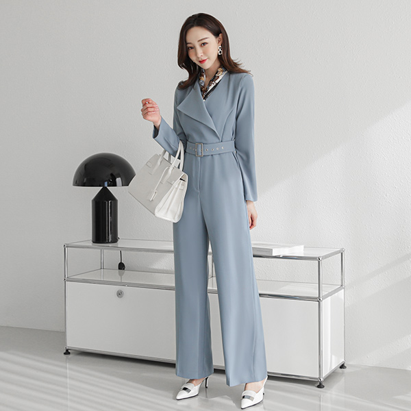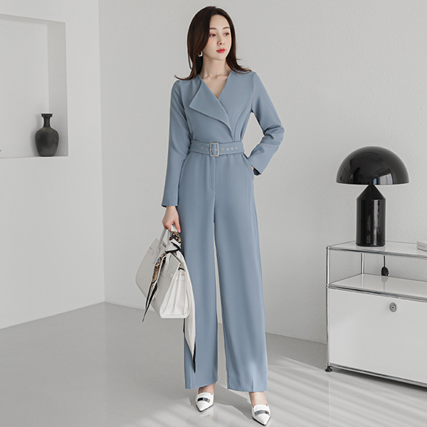 Unbalance Collar Belted Wide Long Jumpsuit