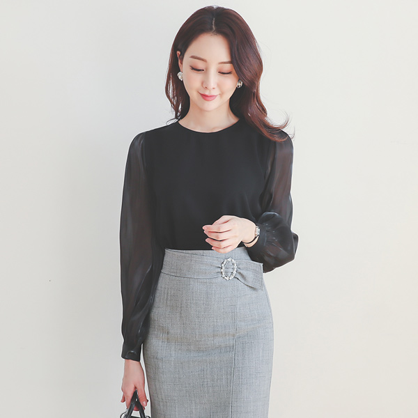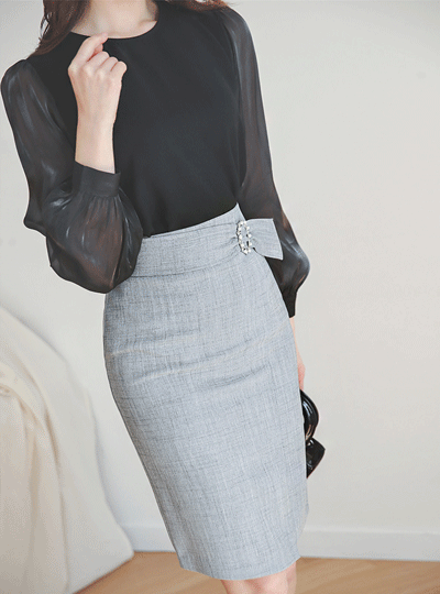 Pearl-Deco Belted Unbalance Slim Skirt