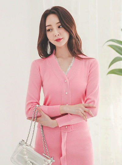 Mini Pearl V-neck Knit Cardigan