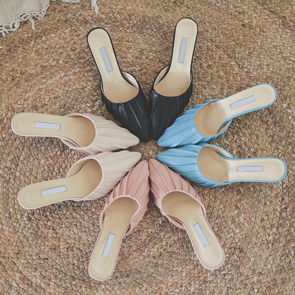 Pastel Pleats Mule Slippers Heels
