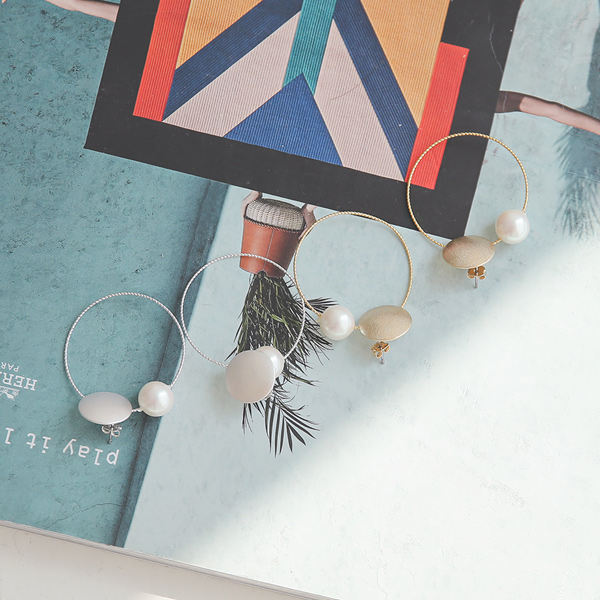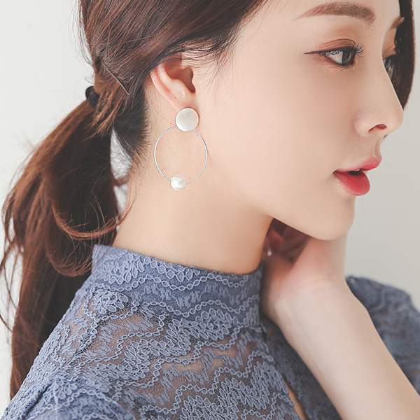 Matte Rounding Pearl Ring Earring