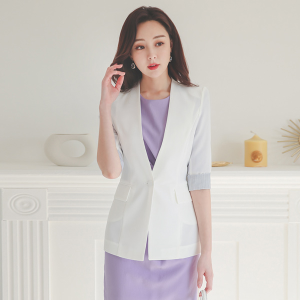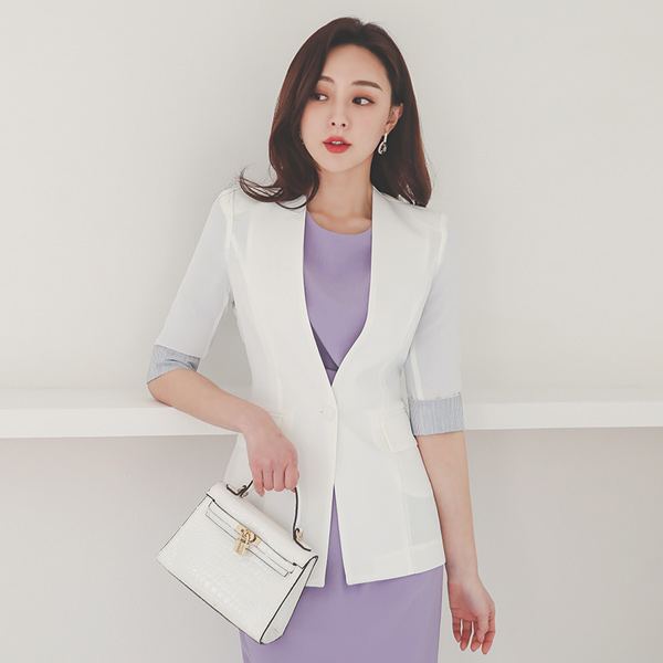 Step minimal Colored-Sleeves No-collar Capri Jacket