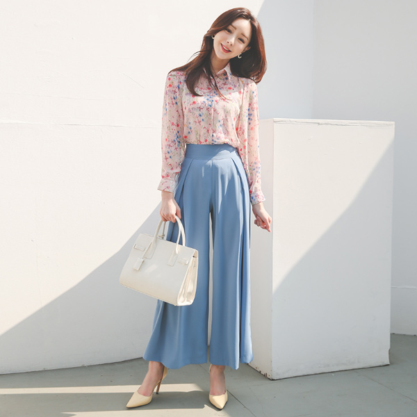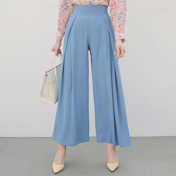 Inverted Obi-Line Pintuck Wide Slacks