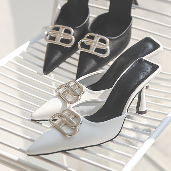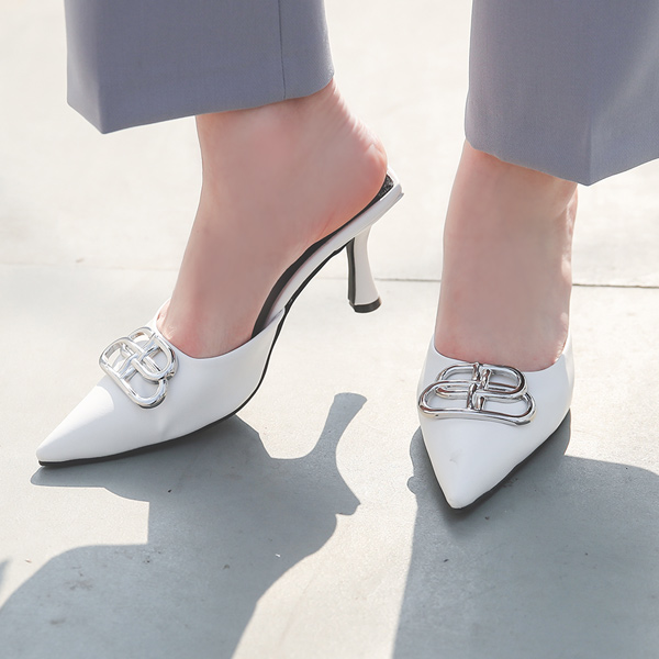 Sharply Silver-Clip Backless Loafer Heels
