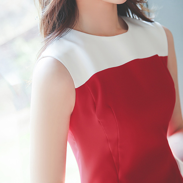 Gold Zipper Color Combination Sleeveless Dress