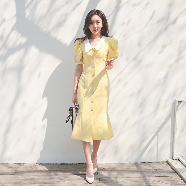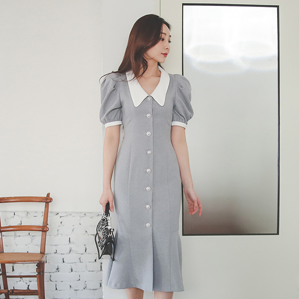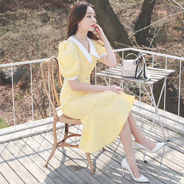 Big Collar Balloon Sleeve Ruffle Decoration Dress