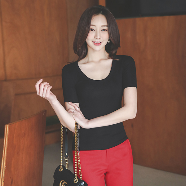 Soft Tension Two-way UNeck Slim T-shirt