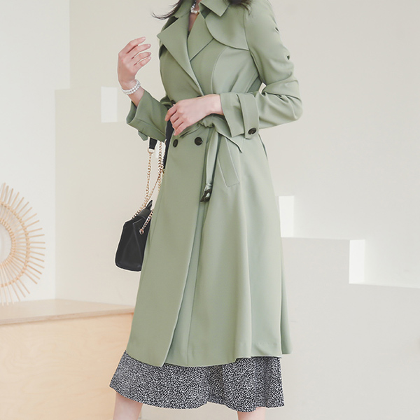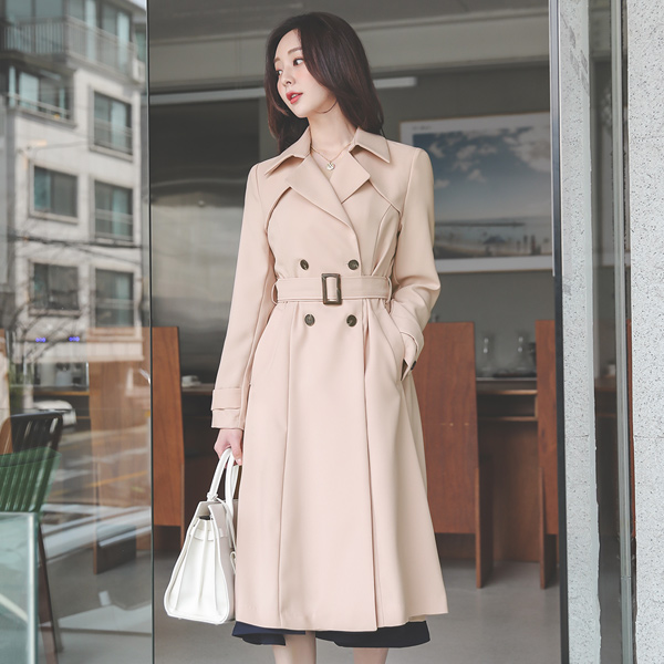 Double Gun Flap A-line Back Pleats Trench Coat
