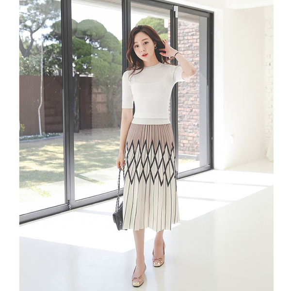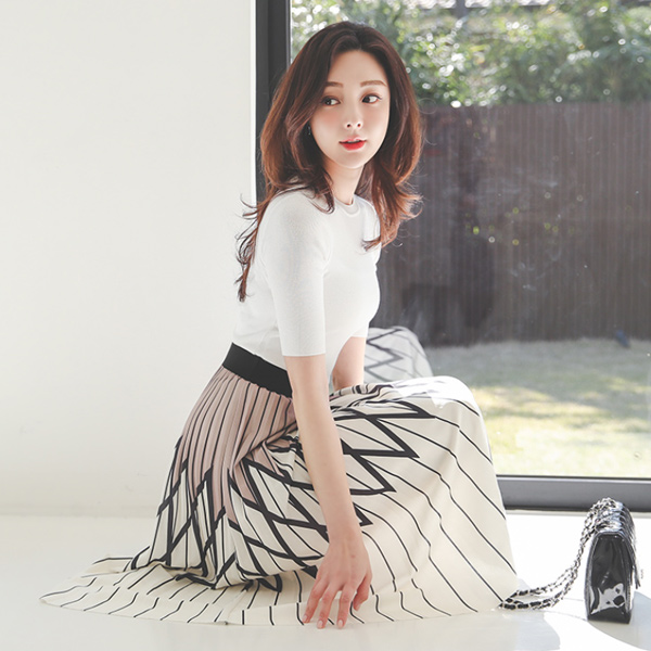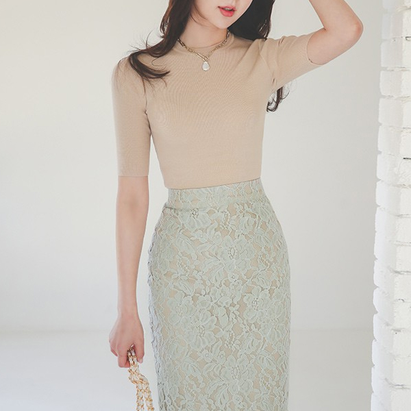 May Basic Midi Sleeves Round Slim Knit T-shirt