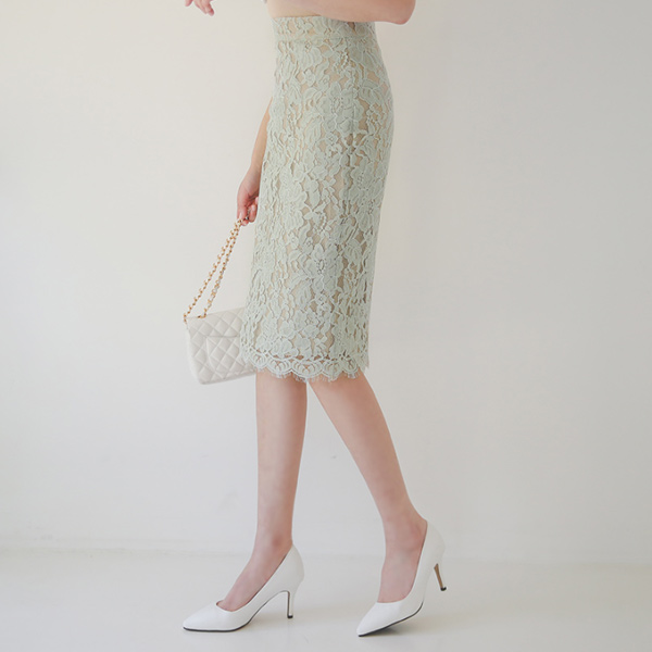 Obi-Line Flower Lace H-line Slim Skirt