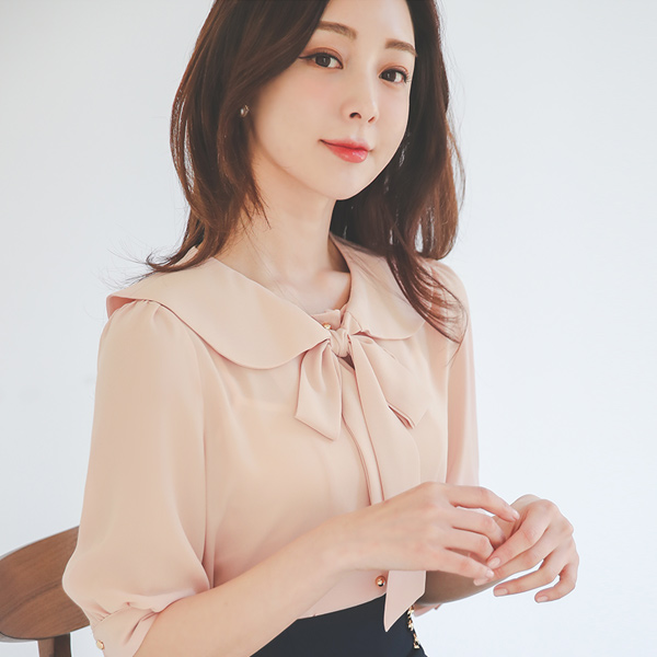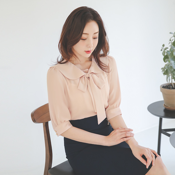 Flat Ribbon-Tie Midi Sleeves Blouse
