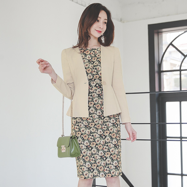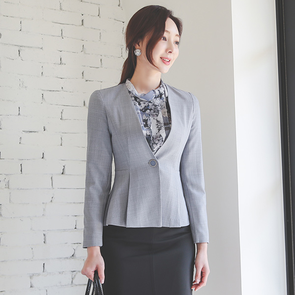 One-Button Pintuck Peplum Slim No-collar Jacket