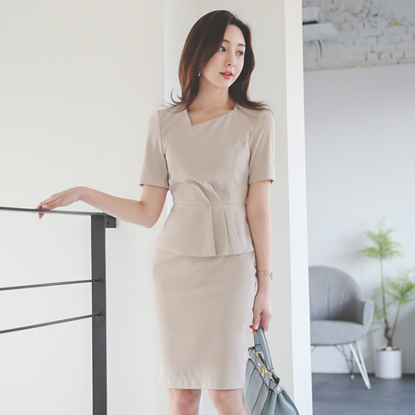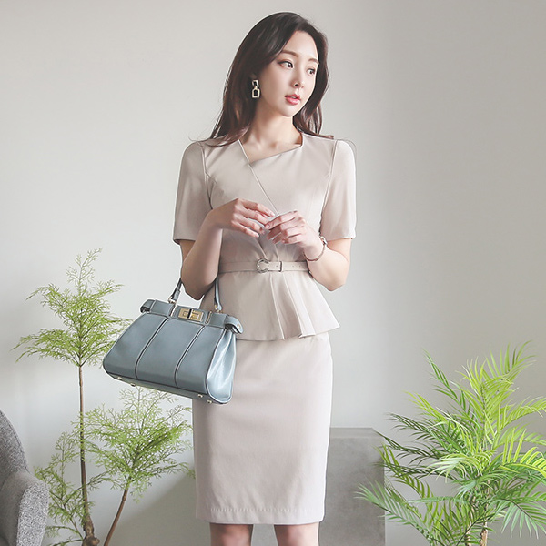 Unbalance Square Neck Cutting Peplum CRing Belted Dress
