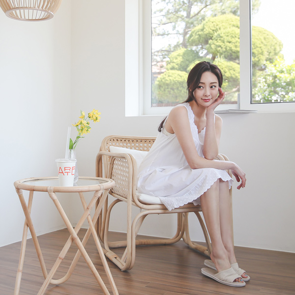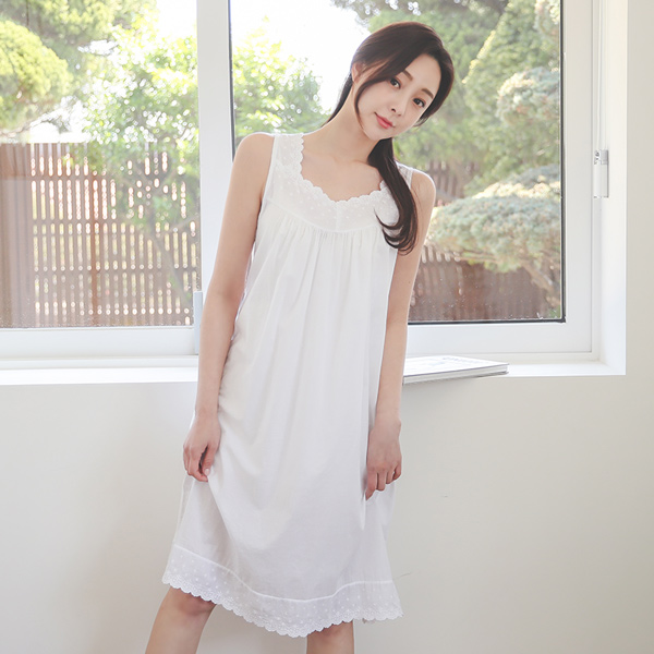 Cotton Embroidery Trimming Sleeveless shirts 파자마 Dress