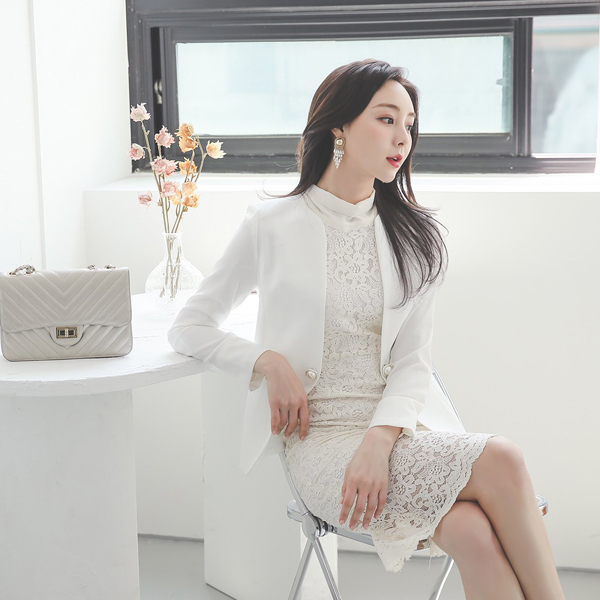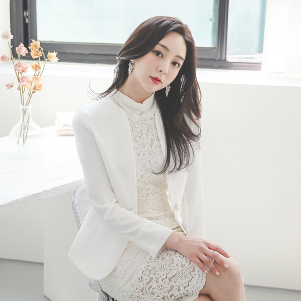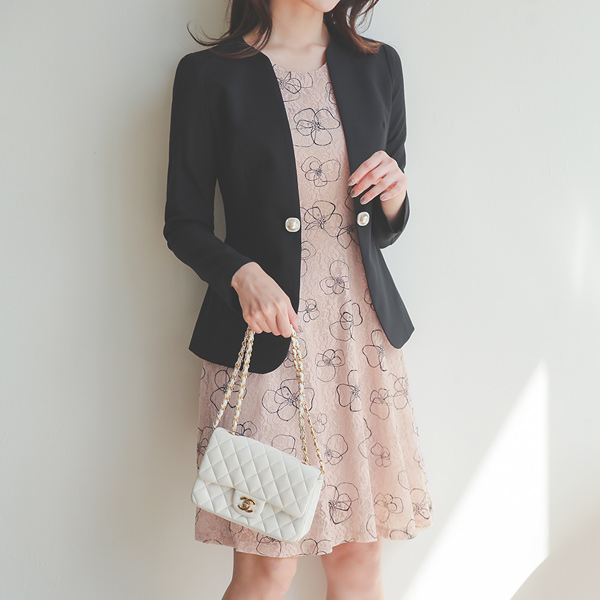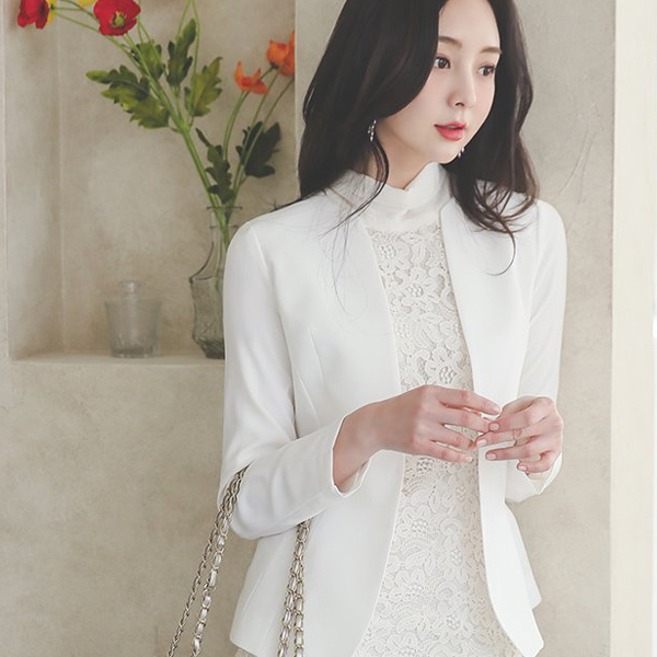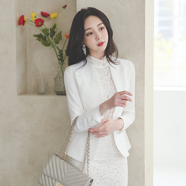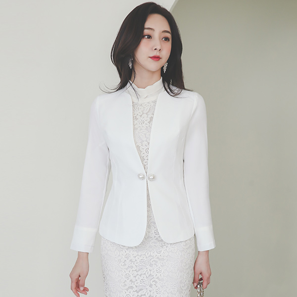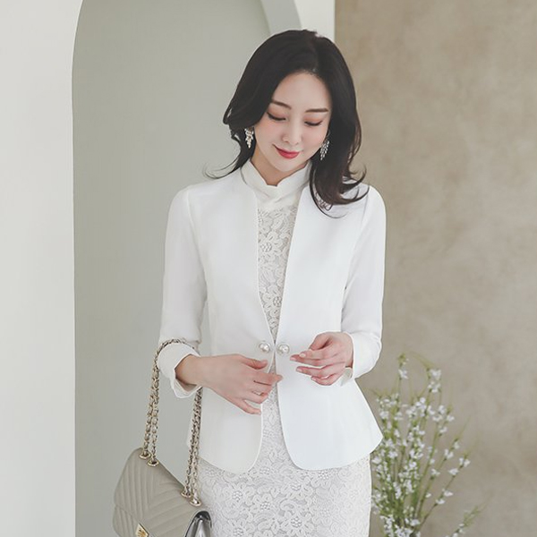 Double Square Pearl Decoration No-collar Jacket