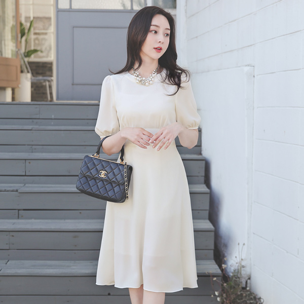 Summer Pleat Puff Flared Dress