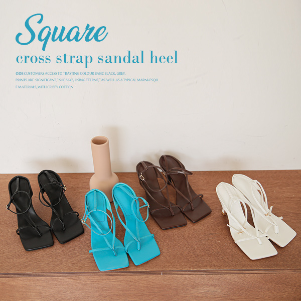 Square Cross Strap Sandal Heel