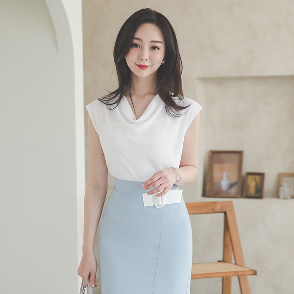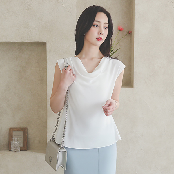Cowl Neck Cap-Sleeves milk Blouse