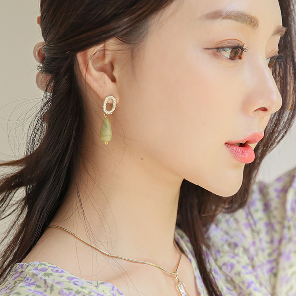 Natural Mable Gold 드롭이어링