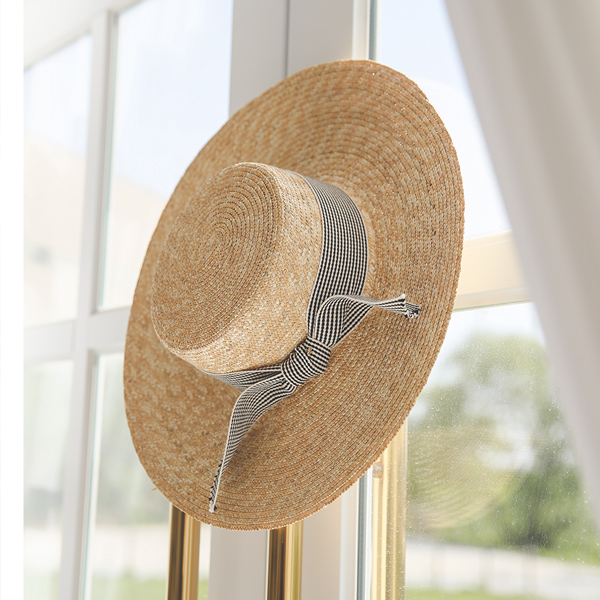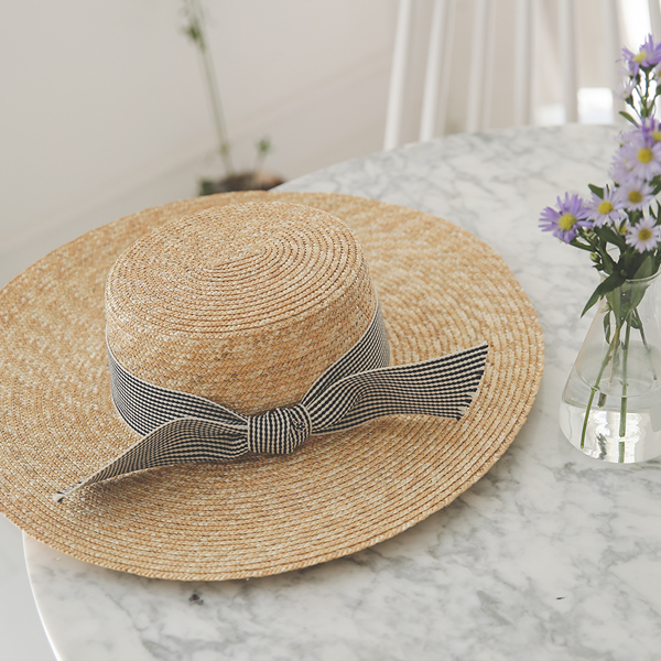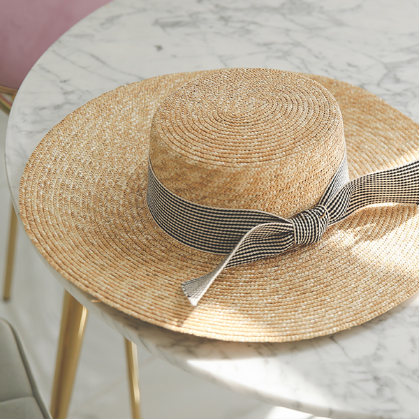 Check Ribbon Summer Straw Hat