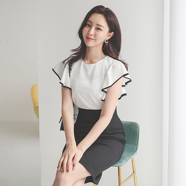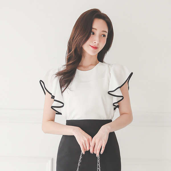 Ruffle Wing Sleeves Chiffon Color Combination Blouse