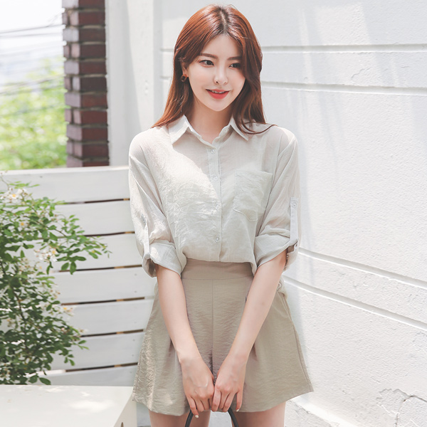 Cotton Blend Wrinkle Gauze One-Pocket Shirt