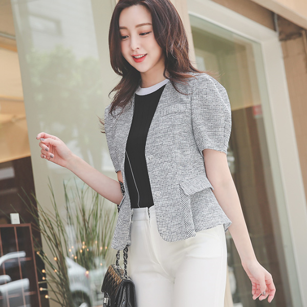Thread-check Clear-Button Puff Jacket