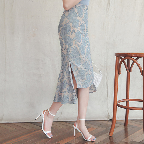 Unbalance Slit Flower Embroidery Mermaid Skirt