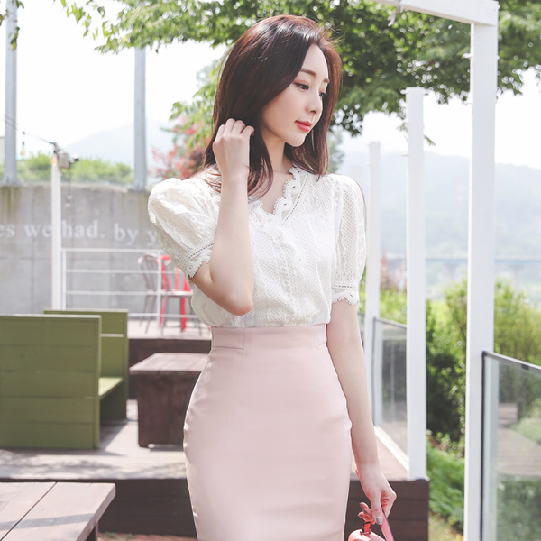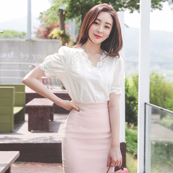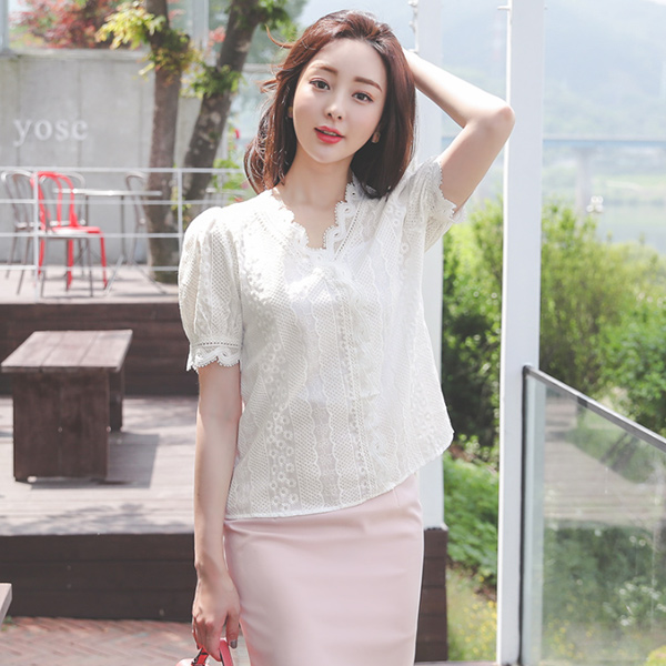 Pure Eyelet Lace Embroidery V-neck Blouse