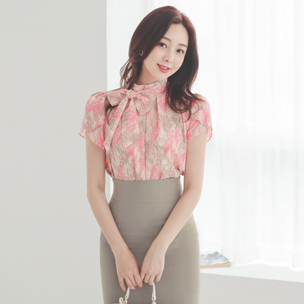 unique Leopard Scarf-Neck Tulip-Sleeves Blouse