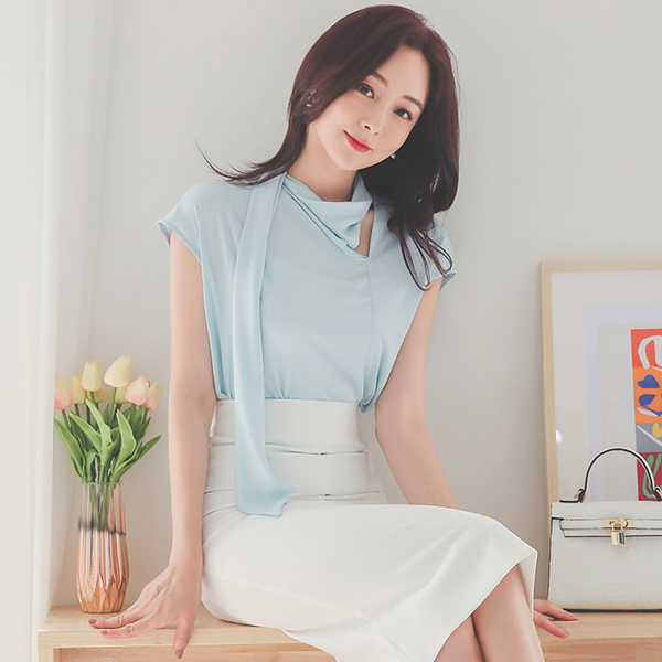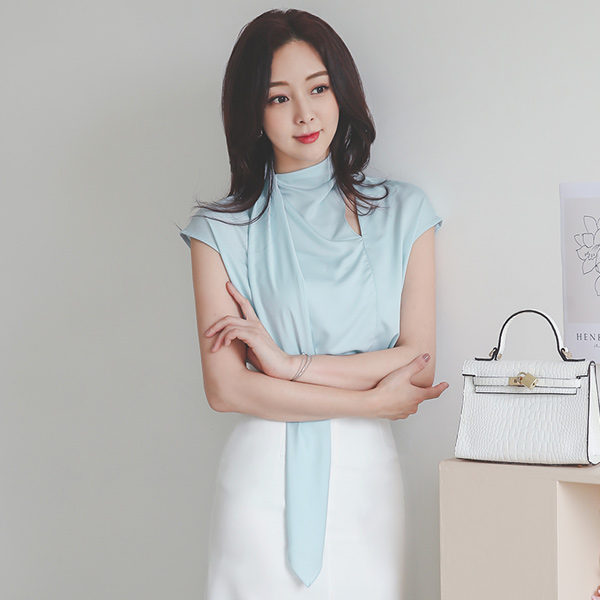 Skily Slit Scarf-Neck French Sleeves Blouse