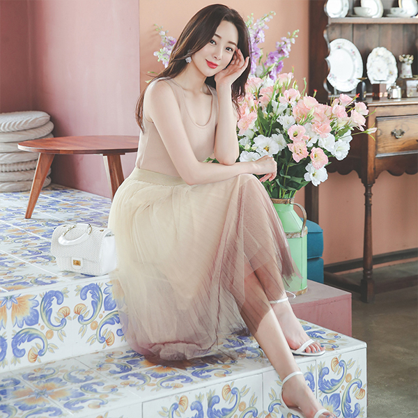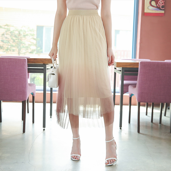 Gradation Mesh Pleats Banding Skirt