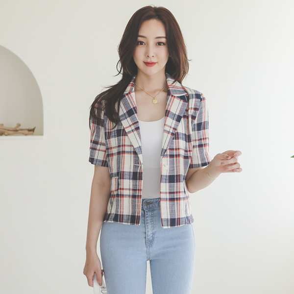 Cotton Linen Color Check Shot Jacket