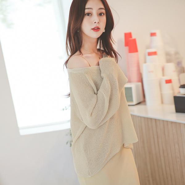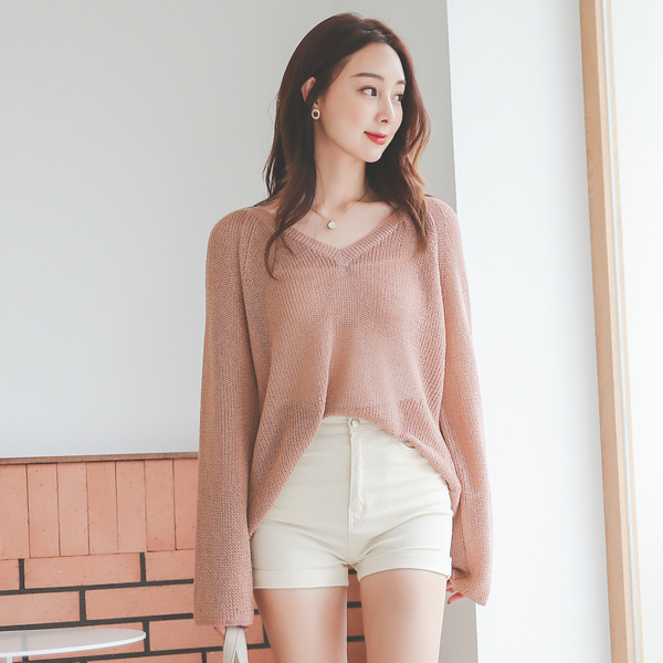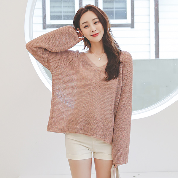 Reglan V-neck 롱슬리브 Knit Mesh Knit