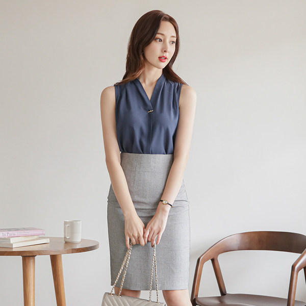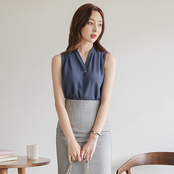 Shoulder Pintuck Gold Tip Point Sleeveless Blouse