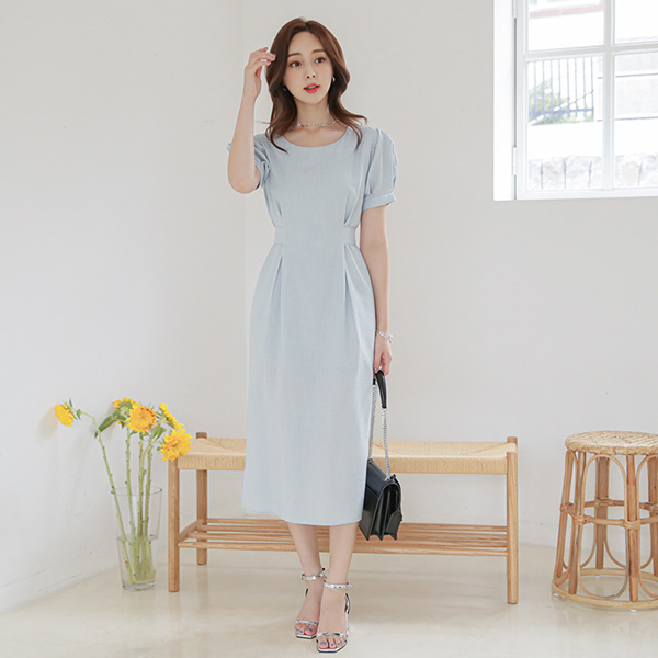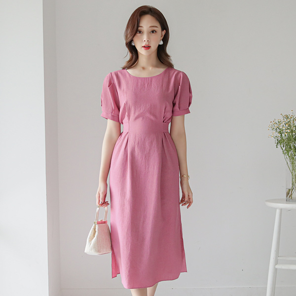 Linen Pintuck Puff Ribbon Dress