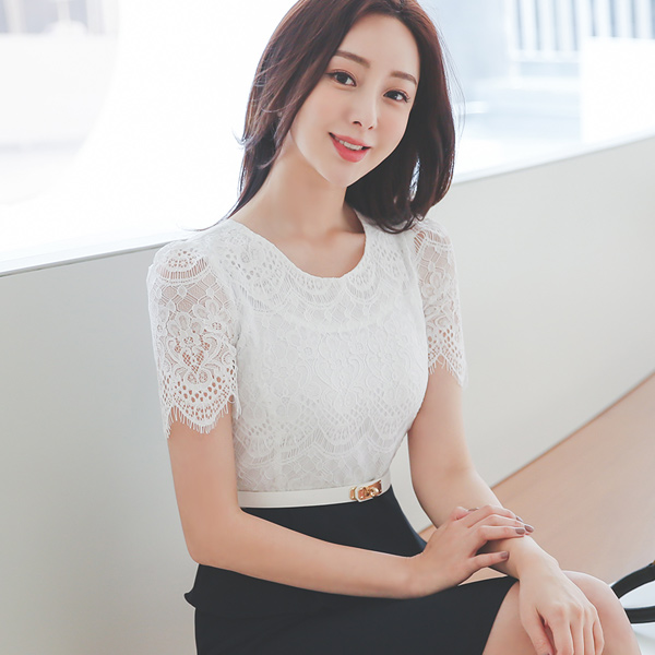 Lace Color Combination Pleats Peplum Dress