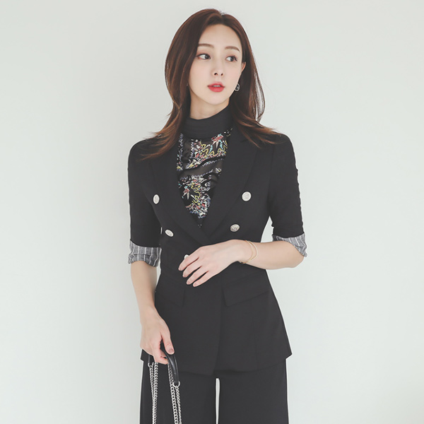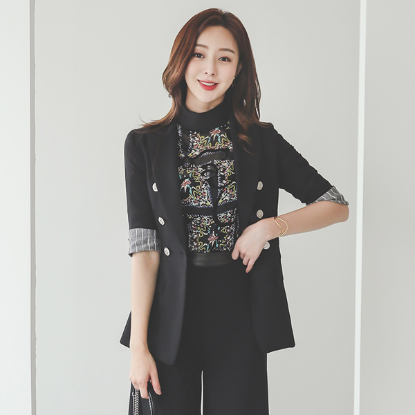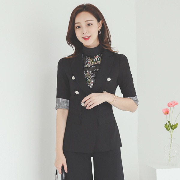 Stripe Color Combination Silver-Button Cooling Span Jacket