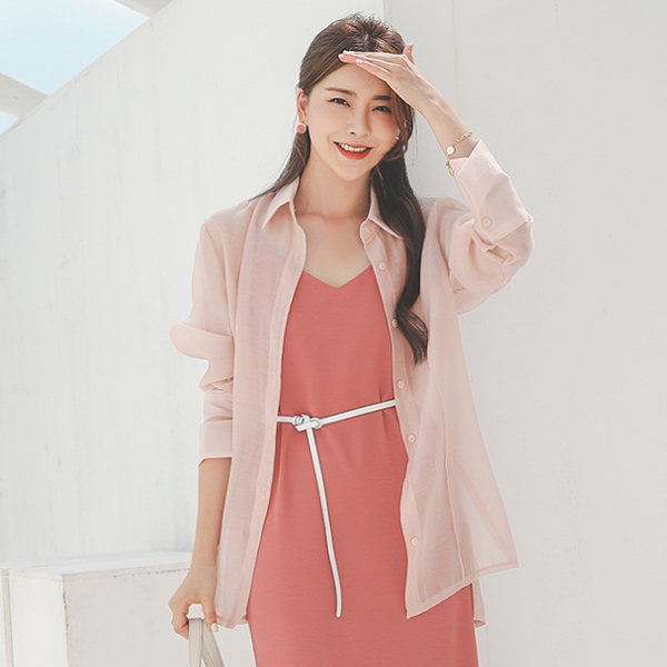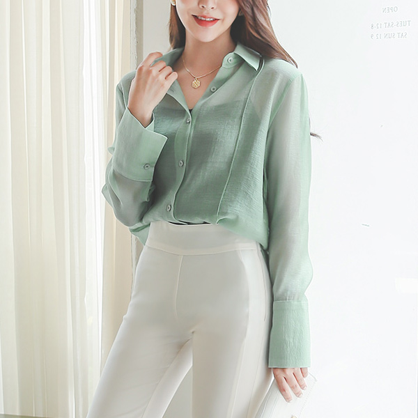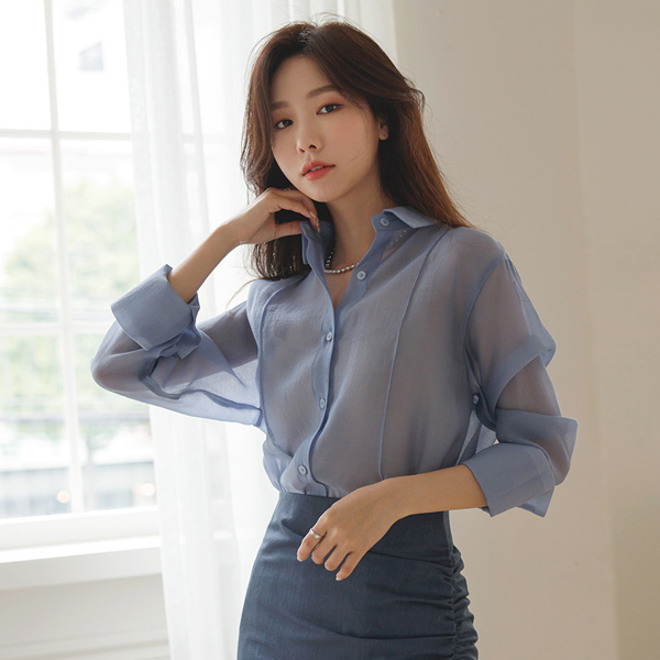 Skily Wide Cuffs Slit Long Cutting Blouse