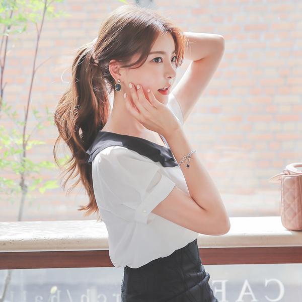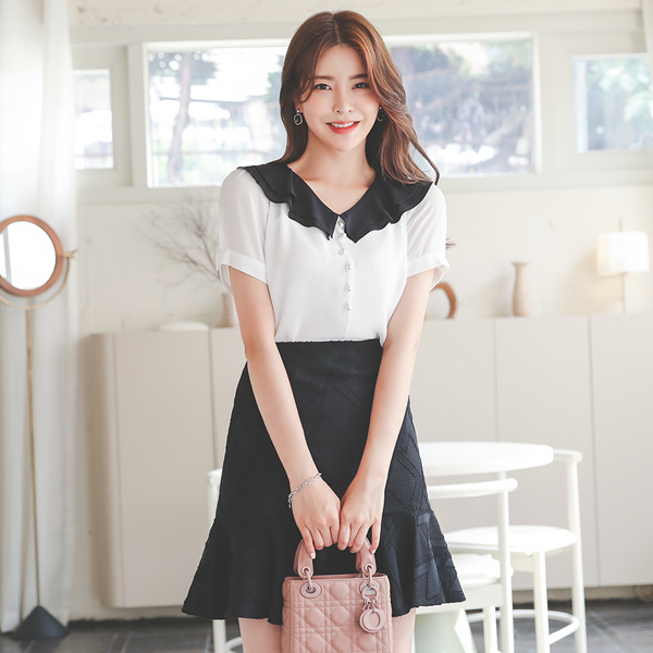 Ruffle Tiered Flat Collar Pearl Blouse