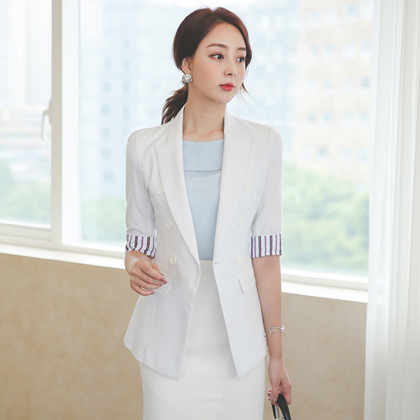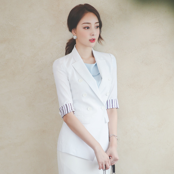 Linen Cotton Color Stripe Color Combination Span Jacket