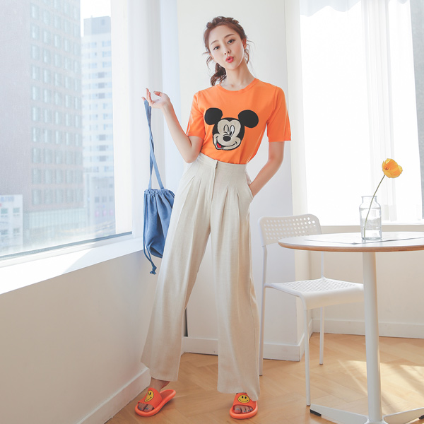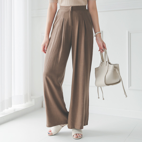 Back Banding Double-Pintuck Cotton&Linen Wide Slacks