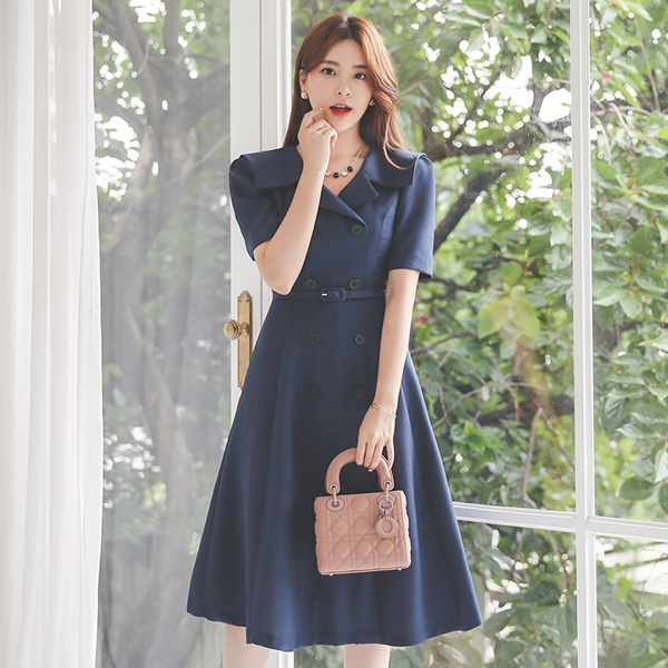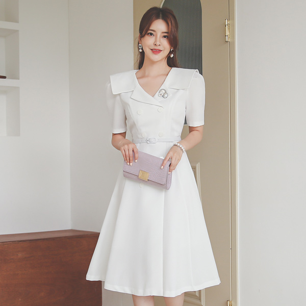 Classic Sailor Collar Double-button Flared Dress